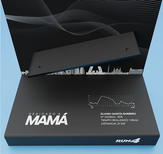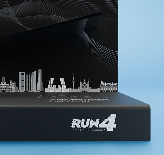 Tu RUN4 irá personalizado con tu nombre, tu número de dorsal, la distancia recorrida, tu marca de carrera y el nombre de la persona especial a quien quieres dedicar tu carrera. Si además del tuyo, pides un podium adicional, podrás hacerle un regalo imborrable.